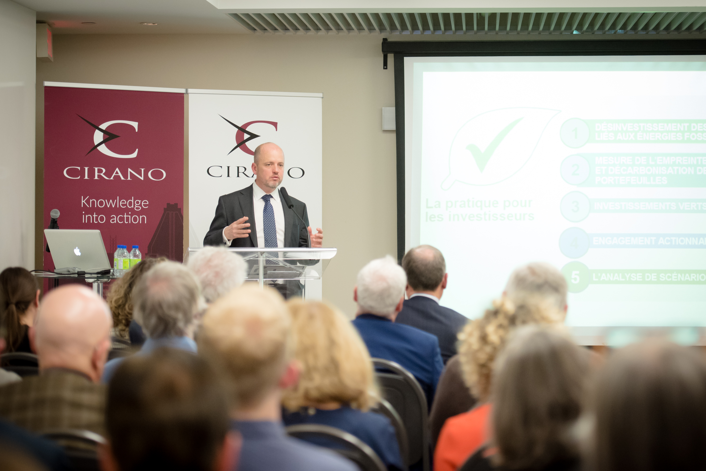 Ce colloque CIRANO visait à discuter des enjeux conceptuels et pratiques entourant la gestion de portefeuille dans ce nouveau contexte, notamment la divulgation par les entreprises, la mesure et l’analyse de l’incidence des gaz à effet de serre. Nous avons abordé également les défis d’allocation d’actif auxquels font face les investisseurs institutionnels. Le colloque se voulait d’orientation pratique et s'est terminé par une table ronde regroupant des gestionnaires qui ont fait le point sur la question en fonction de leur expérience.