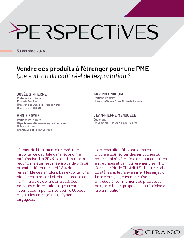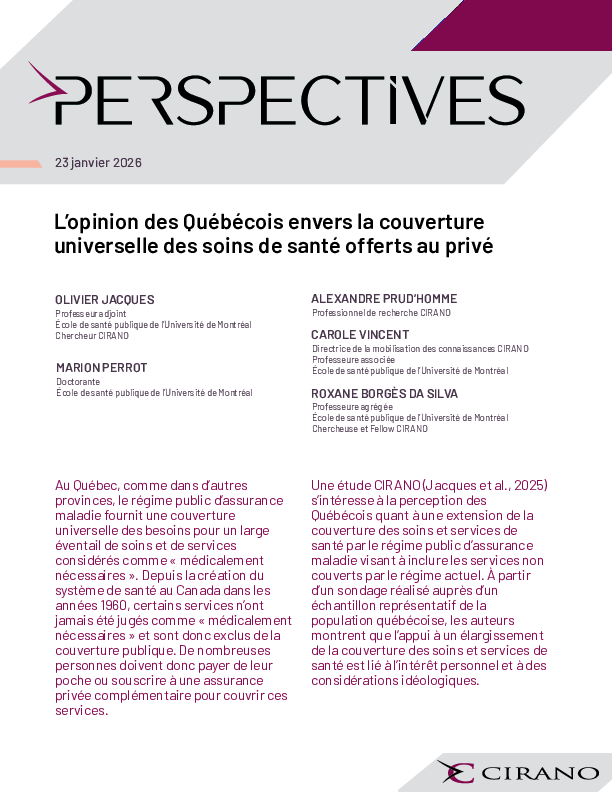 PERSPECTIVES est la revue de diffusion et de valorisation de la recherche au CIRANO. Rédigés dans une forme accessible à un auditoire élargi, les articles de la revue PERSPECTIVES assurent une visibilité aux travaux et à l’expertise de la communauté de recherche du CIRANO.
