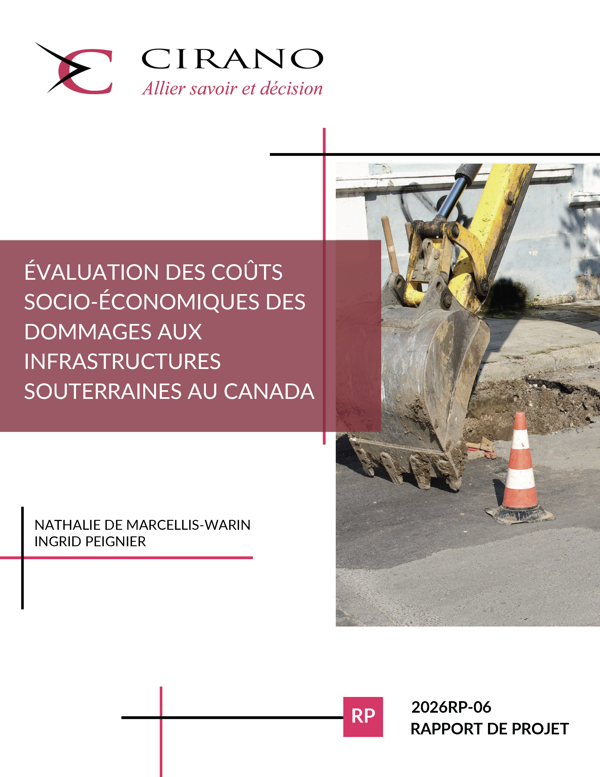 Ce rapport présente la refonte complète de l’outil d’estimation des coûts socio- économiques des dommages aux infrastructures souterraines au Canada, développé initialement par le CIRANO en 2015. La version 2026 élargit la couverture géographique à l’ensemble des provinces canadiennes, enrichit le cadre d’estimation avec quatre nouvelles catégories de coûts (accidents routiers supplémentaires évités, évacuation, interruption du service d’eau, dommages matériels liés aux bris de conduites d’aqueduc), actualise les méthodologies existantes et surtout affine l’ensemble des calculs à l’échelle de la subdivision de recensement (environ 4 000 zones locales). L’outil traite les données de la base ORDI, une base de données des dommages aux infrastructures causés par des tiers remplie par les propriétaires d’infrastructures sur une base volontaire. L’outil estime huit catégories de coûts indirects en fonction du type d’infrastructure endommagée, de la localisation géographique et de la magnitude du bris.